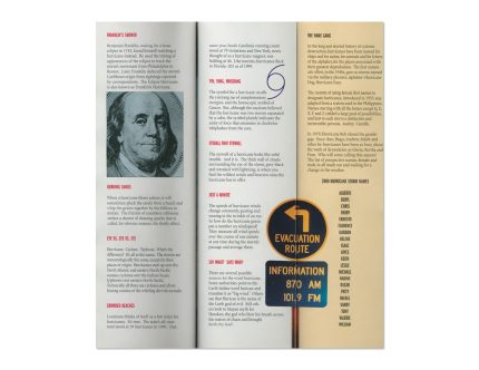 The brochure contains an illustrated list of supplies needed, preparation dos and don’ts, and of course a hurricane cocktail recipe perfect for hurricane parties during and after the storm.